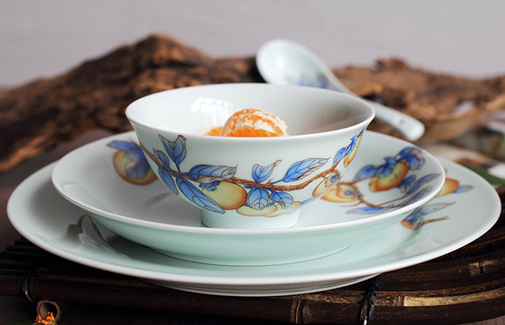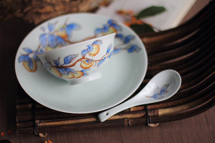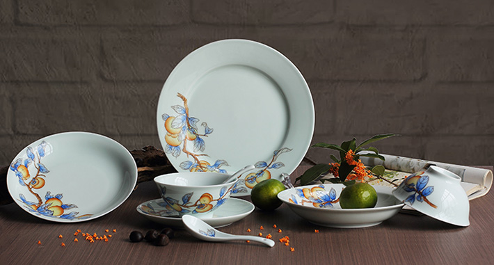 36頭青釉手繪中餐具--事事如意